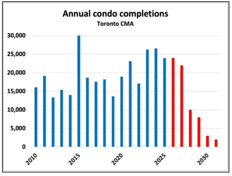 Ontario and Toronto were not the worst abusers of this program, as we are slightly below the Canadian average. However, we are dealing with another supply issue. Although declining, Toronto is still expecting the completion of 20,000 pre-construction condos per year in 2026 and 2027. A large majority of these condos will enter both the resale and rental markets.