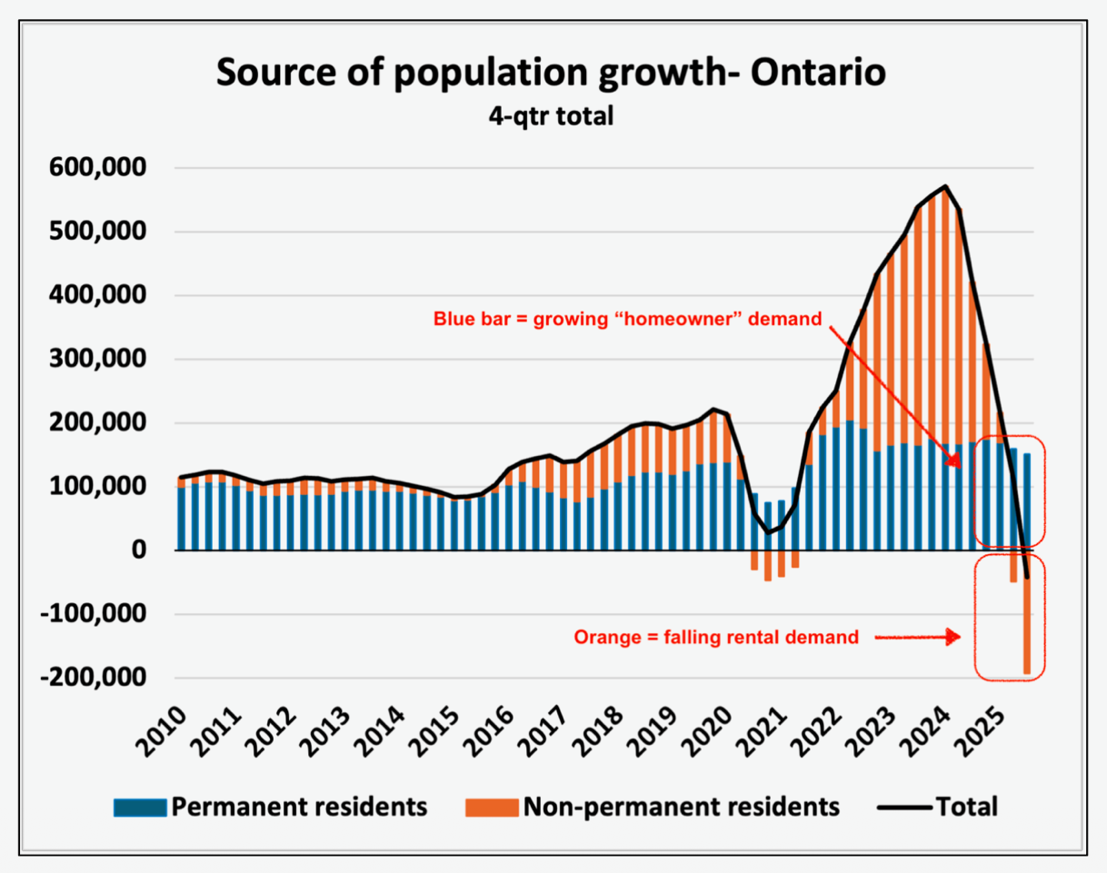 We have now seen NPR's growth go negative for two straight quarters. This was expected. For one, the lack of job opportunities (declining employment and rising unemployment), coupled with the rising cost of living (CPI growth), is causing Canada to lose its lustre as a destination. Combine that with the federal government's mandate to reduce the share of non-permanent residents in our population from 7% to 5%, and you have guaranteed a long-term decline in rental demand in Canada.