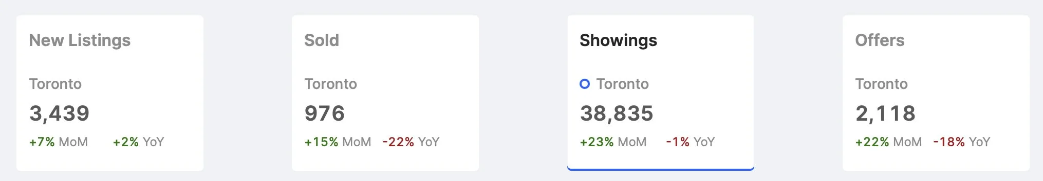 Brokerbay tracks buyer showings booked by real estate agents for every property in its system. Year-over-year showings are up 6%. Some of the growth may be due to increased adoption of the program among Toronto Brokerages; however, a 16% month-over-month increase in activity shows that buyer activity is on the rise. So far, there have been 41,000 showings in Toronto this month. There are still 11 days left in the month to reach the 69,000 and 67,000 showings we saw in April 2024 and 2025, respectively.