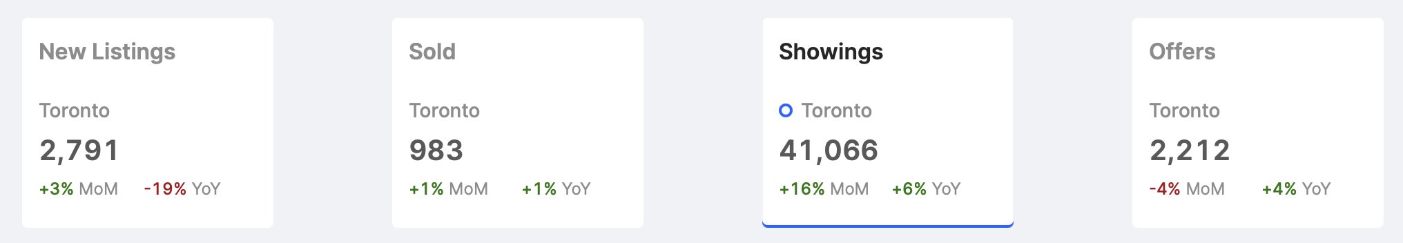 Despite the higher volume of active buyers, the number of offers registered on the platform has decreased from last month (-4%). Leading to only a modest increase in sales Y-O-Y (+1%) and M-O-M (+1%). So all these showings aren’t leading to as many buyers purchasing homes. I am seeing this on the ground level: buyers will be willing to see a home but hold off on making an offer due to the reasons listed earlier.